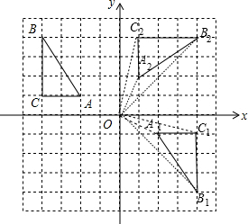(2)利用网格特点和旋转的性质画出点A1、B1、C1的对应点A2、B2、C2,于是可得到△A2B2C2,再写出点C2的坐标.