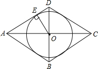 点评:本题考查了直线与圆的位置关系及菱形的性质,解题的关键是求得对角线的交点到各边的距离.