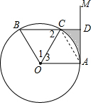 分析 (1)由已知条件得到△BOC是等边三角形,根据等边三角形的性质得到∠1=∠2=60°,由角平分线的性质得到∠1=∠3,根据平行线的性质得到∠OAM=90°,于是得到结论;