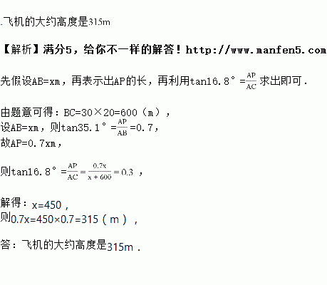 ,由此你能知道飞机的大约高度吗?(参考数据: