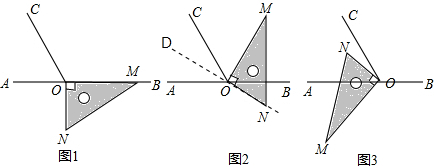 解答 解:(1)∵∠BOC=120°,∠MON=90°,