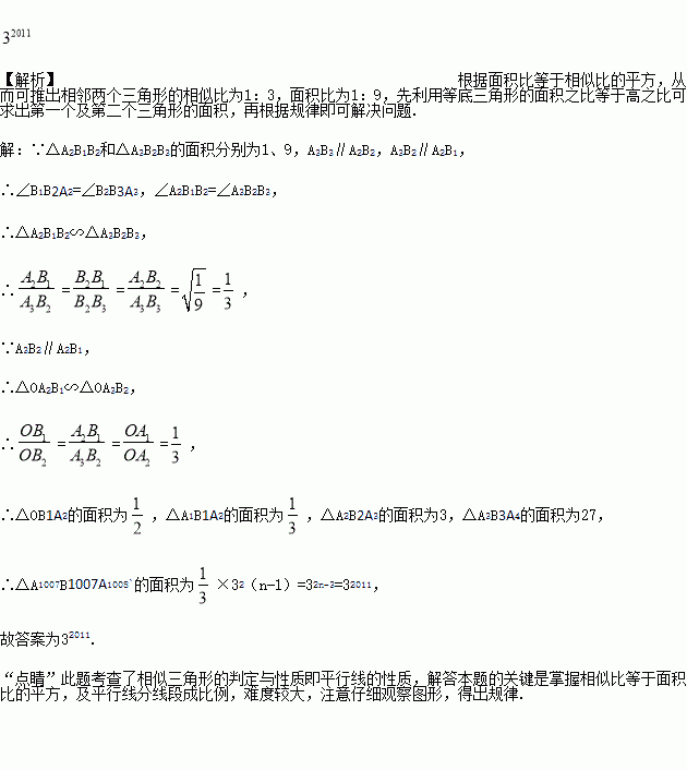 如图,点A1,A2在射线OA上,B1在射线OB上,依次作A2B2∥A1B1,A3B2∥A2B1,A3B3∥A2B2,A4B3∥A3B2,…. 若