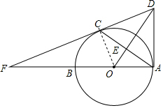分析 (1)连接OC.根据垂径定理得到AE=CE,根据全等三角形和切线的性质得到∠OCD=∠OAD=90°,于是得到结论;