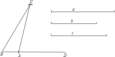 分析 先画线段BD=a,则截取DA=b,然后分别以A、B点为圆心,b、c为半径画弧,两弧相交于C点,则△ABC满足条件.