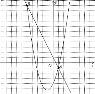 (2)指出一次函数与二次函数的另一个交点B的坐标,并在所给坐标系中画出一次函数与二次函数的图象;