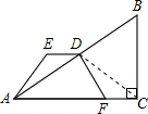 分析:可通过构建全等三角形来证明,连接CD,那么CD就是直角三角形斜边上的中线,那么DC=AD,∠DAC=∠DCA,在三角形AED和DFC中,已知的条件有AD=CD,ED=FC,只要再证得两组对应边的夹角相等即可得出全等的结论,由于ED、CF平行,那么∠EDA=∠DAF=∠DCA,这样就构成了两三角形全等的条件(SAS)就能得出AE=DF的结论了.