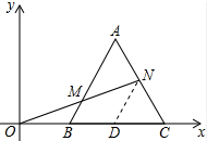分析 作ND∥AB交OC于D,则∠NDC=∠ABC,∠DNC=∠A,由点的坐标得出OB=2,OB=6,得出BC=4,BD=CD=2,由等边三角形的性质得出∠A=∠ABC=∠ACB=60°,AC=BC=4,证明△CDN是等边三角形,得出CN=DN=CD=2.