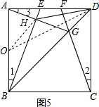 (4)①根据正方形的性质可得AB=AD=CD,∠BAD=∠CDA,∠ADG=∠CDG,然后利用“边角边”证明△ABE和△DCF全等,根据全等三角形对应角相等可得∠1=∠2,利用“SAS”证明△ADG和△CDG全等,根据全等三角形对应角相等可得∠2=∠3,从而得到∠1=∠3,然后求出∠AHB=90°,取AB的中点O,连接OH、OD,根据直角三角形斜边上的中线等于斜边的一半可得OH=$\frac{1}{2}$AB=1,利用勾股定理列式求出OD,然后根据三角形的三边关系可知当O、D、H三点共线时,DH的长度最小;
