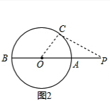 (1)证明:如图2,在⊙O上任取一点C(不为点A、B),连接PC、OC.