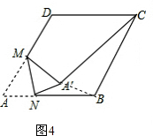 (3)解:如图4,由折叠知A′M=AM,又M是AD的中点,可得MA=MA′=MD,![]()