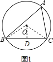 解答 解:(1)连接OB,OC,过点O作OD⊥BC于点D,