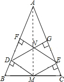 解答 证明:连接AM,∵DM⊥AB,EF⊥AB,ME⊥AC,DG⊥AC,∴EF∥DM,DG∥ME,∴四边形DNEM是平行四边形,∵M是等腰三角形ABC底边BC上的中点,∴AM是∠BAC的角平分线,∴DM=ME,∴四边形MEND是菱形.