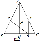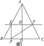 ·ÖÎö £¨1£©µ±t=2ʱ£¬DH=AH=2£¬ÔòµãHÊÇADµÄÖе㣬ÓÉEF¡ÍAD£¬µÃµ½EFΪADµÄ´¹Ö±Æ½·ÖÏߣ¬ÓÚÊǵõ½AE=DE£¬AF=DF£¬¸ù¾ÝµÈÑüÈý½ÇÐεÄÐÔÖʵõ½¡ÏB=¡ÏC£¬ÓÉÓÚEF¡ÎBC£¬ÓÚÊǵõ½¡ÏAEF=¡ÏB£¬¡ÏAFE=¡ÏC£¬µÈÁ¿´ú»»µÃµ½¡ÏAEF=¡ÏAFE£¬µÃµ½AE=AF£¬ÓÚÊǵõ½½áÂÛ£»