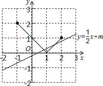 当y=$\frac{1}{2}$x+m经过点(2,1)时,$\frac{1}{2}$×2+m=1,