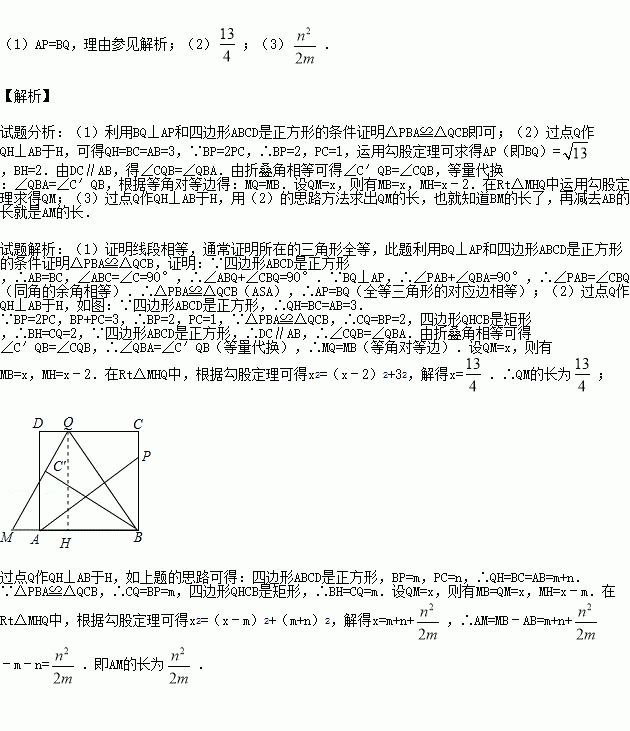 (1)试探究AP与BQ的数量关系,并证明你的结论;