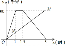 当x=1时,y=30,即N(1,30),所以此时的距离:90-30=60(千米).