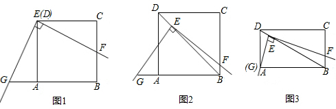 (3)运用(1)(2)解答中所积累的活动经验和数学知识,完成下题:如图3,将(2)中的“正方形ABCD”改成“矩形ABCD”,使角尺的一边经过点A(即点G、A重合),其余条件不变,若AB=4,BG=3,求
