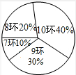 ·ÖÎö £¨1£©¸ù¾Ýͳ¼Æ±í£¨Í¼£©ÖÐÌṩµÄÐÅÏ¢£¬¿ÉÁÐʽµÃÃüÖл·ÊýÊÇ7»·µÄ´ÎÊýÊÇ10¡Á10%£¬10»·µÄ´ÎÊýÊÇ10-3-2-1£¬ÔÙ·Ö±ðÇó³öÃüÖл·ÊýÊÇ8»·ºÍ10»·µÄÔ²ÐĽǶÈÊý»Í¼¼´¿É£¬