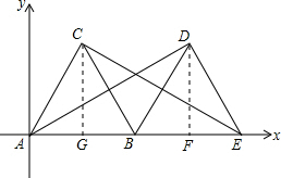 分析 (1)由三角形DBE是由三角形ABC旋转得到的,利用等边三角形的性质及平角定义求出∠DBC=60°,利用SAS得到三角形ABD与三角形BCE全等,利用全等三角形对应边相等即可得证;
