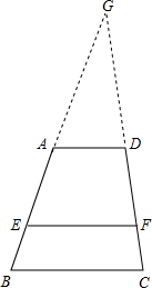 分析 首先延长BA与CD,相交于点G,由AD∥EF∥BC,可得△GAD∽△GEF,△GAD∽△GBC,又由AD=2,EF=5,根据相似三角形的对应边成比例,即可求得BC的长.