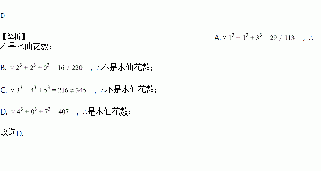 各个数位上数字的立方和等于其本身的三位数叫做“水仙花数”.比如153是“水仙花数”,因为