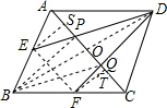 分析:首先连接BD,BQ,BP,EF,过E作AC垂线交AC于S,过F作AC垂线交AC于T,进而得出E,F分别为AB,BC中点,再求出四边形PBQD为平行四边形,进而求出AC与BD互相平分,即可得出答案.