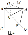 作BM⊥BD,并在BM上截取BG=DF=1,连接AG、EG;如图4所示: