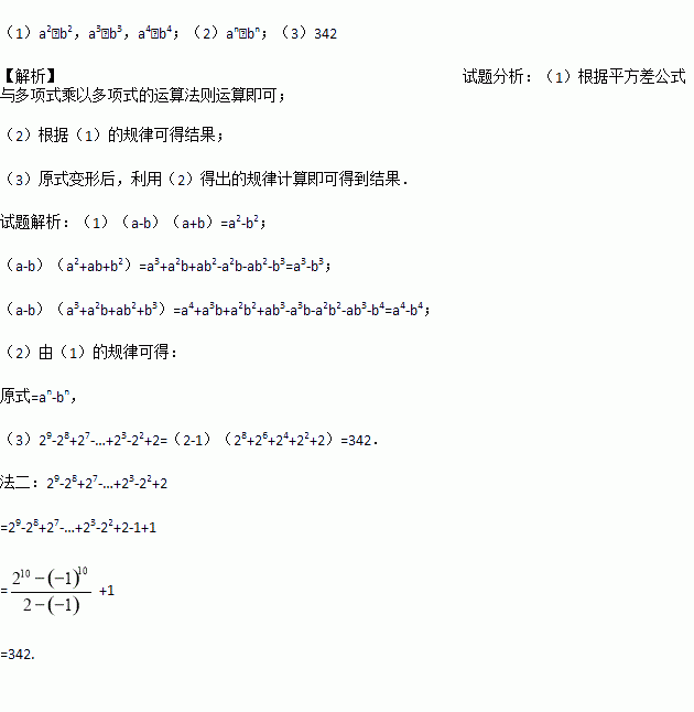 (a-b)(an-1+an-2b+…+abn-2+bn-1)=________ (其中n为正整数,且n≥2).