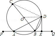 分析 (1)连结OD,如图,由OD=OB得∠OBD=∠ODB,由BD平分∠CBQ得∠OBD=∠DBQ,由于∠EBD+∠BDE=90°,则∠EDB+∠BDO=90°,所以DE⊥OD,于是根据切线的判定定理得到DE是⊙O的切线;