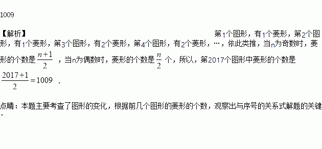 已知:顺次连结矩形各边的中点,得到一个菱形,如图①;再顺次连结菱形各边的中点,得到一个新的矩形,如图②;然后顺次连结新的矩形各边的中点,得到一个新的菱形,如图③;如此反复操作下去,则第2017个图形中菱形的个数有__________ 个