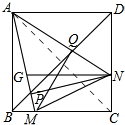 分析 先有∠MAN=45°得出∠MAC=∠DAN,结合∠ACM=∠ADQ,得出△AMC∽△AQD,得到比例式判断出CM=$\sqrt{2}$DQ,同理:得出CN=$\sqrt{2}$BP,由$\frac{AQ}{AM}=\frac{AD}{AC}$=$\frac{DQ}{CM}$=$\frac{\sqrt{2}}{2}$①