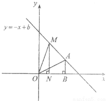 (2)M是直线y=-x+b上异于A的动点,且在第一象限内。过M作x轴的垂线,垂足为N。若△MON的面积与△AOB的面积相等,求点M的坐标。