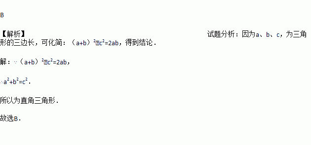 三角形的三边长分别为a、b、c,且满足等式:(a+b)2﹣c2=2ab,则此三角形是( )