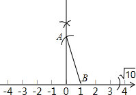 首先过0作垂线,再截取AO=3,然后连接A和表示1的点B,再以O为圆心,AB长为半径画弧,与原点右边的坐标轴的交点为