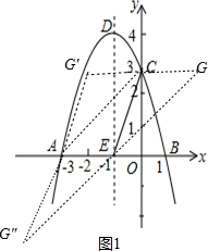 £¨2£©Ò×µÃÅ×ÎïÏߵĶԳÆÖáΪֱÏßx=-1£¬ÔòE£¨-1£¬0£©£¬Èçͼ1£¬ÔòAE=2£¬¸ù¾ÝƽÐÐËıßÐεÄÐÔÖÊ£¬ÀûÓÃµãÆ½ÒÆµÄ×ø±ê¹æÂÉÇóGµã×ø±ê£»