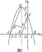 £¨4£©ÏÈÀûÓù´¹É¶¨Àí¼ÆËã³öAD=2$\sqrt{5}$£¬ÉèP£¨-1£¬t£©£¬ÔòPE=PH=|t|£¬DP=4-t£¬ÔÙÖ¤Ã÷Rt¡÷DHP¡×Rt¡÷DEA£¬ÀûÓÃÏàËÆ±ÈµÃµ½|t|£º2=£¨4-t£©£º2$\sqrt{5}$£¬È»ºóÌÖÂÛ£ºµ±t£¾0ʱ£¬t£º2=£¨4-t£©£º2$\sqrt{5}$£»µ±t£¼0ʱ£¬-t£º2=£¨4-t£©£º2$\sqrt{5}$£¬ÔÙ·Ö±ð½â·½³ÌÇó³öt¼´¿ÉµÃµ½Pµã×ø±ê£®