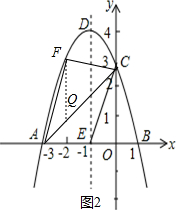 £¨3£©Èçͼ2£¬×÷FQ¡ÎyÖá½»ACÓÚQ£¬ÏÈÀûÓôý¶¨ÏµÊý·¨Çó³öÖ±ÏßACµÄ½âÎöʽΪy=x+3£¬ÉèF£¨x£¬-x2-2x+3£©£¬ÔòQ£¨x£¬x+3£©£¬Ôò¿É±íʾ³öFQ=-x2-3x£¬¸ù¾ÝÈý½ÇÐÎÃæ»ý¹«Ê½µÃµ½S¡÷FAC=-$\frac{3}{2}$x2-$\frac{9}{2}$x£¬È»ºóÀûÓöþ´Îº¯ÊýµÄÐÔÖÊÇó½â£»