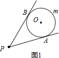 解答 解:(1)如图1,∠P=$\frac{\widehat{AmB}的度数-\widehat{AB}的度数}{2}$,