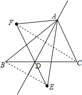 分析 (1)分别作点B、点C关于直线A、D的对称点E、F,顺次连接连接A、E、F即可;(2)根据轴对称的性质即可得出结论.