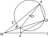 (2)连结BC、CD,如图,根据圆周角定理得到∠ACB=90°,则BC⊥AC,再根据轴对称的性质得到MD平分∠EMC,于是根据角平分线的性质得BC=BE,所以可判断点C与点E关于直线MD对称,得到△BCD≌△BED,则∠BCD=∠BED,再由圆周角定理得∠BCD=∠BAD,于是得到∠BAD=∠BED.