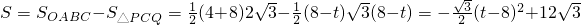 由已知得CQ=8-t,