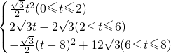 (3)分别对当0≤t≤2时,以及当2<t≤6时和当6<t≤8时进行分析得出函数关系式即可.