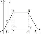 如图所示,在平面直角坐标系中,四边形OABC为梯形,且OA=AB=BC=4,∠AOC=60°,垂直于x轴的直线l从y轴出发,沿x轴正方向以每秒1个单位长度的速度运动(运动到点C为止).