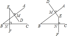 已知∠ABC的边BA、BC分别与∠DEF的边ED、EF垂直,垂足分别为M、N.请画出图形.