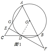 分析 (1)连接OD,由等腰三角形的性质得出∠ODB=∠C,证出OD∥AC,再由已知得出EF⊥OD,即可证出EF是⊙O的切线;