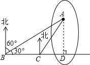 则sin60°=$\frac{AD}{AC}$=$\frac{AD}{20}$=$\frac{\sqrt{3}}{2}$,