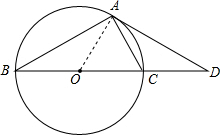 (2)连接OA,根据等腰三角形的性质得到∠B=∠OAB,得到∠OAB=∠CAD,由BC是⊙O的直径,得到∠BAC=90°即可得到结论.