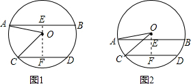 过O作OE⊥AB交AB于E点,过O作OF⊥CD交CD于F点,连接OA、OC,如图1所示:
