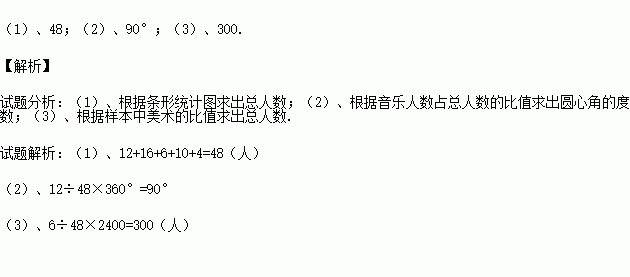 (3)若该校有2400名学生,请估计该校参加“美术”活动项目的人数