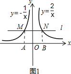 ÀíÓÉ£ºÈçͼ1£¬ÉèÖ±ÏßlÓëyÖá½»ÓÚµãC£¬·Ö±ð¹ýµãM¡¢N×öMA¡ÍXÖáÓÚµãA£¬NB¡ÍÖá![]()